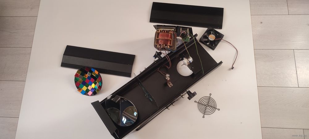 он трансформаторный - то есть блок питания это транс огромный) так же есть еще два таких устройства с другими отражателями чисто белыми но без ламп и по второму отражателю отсутствует