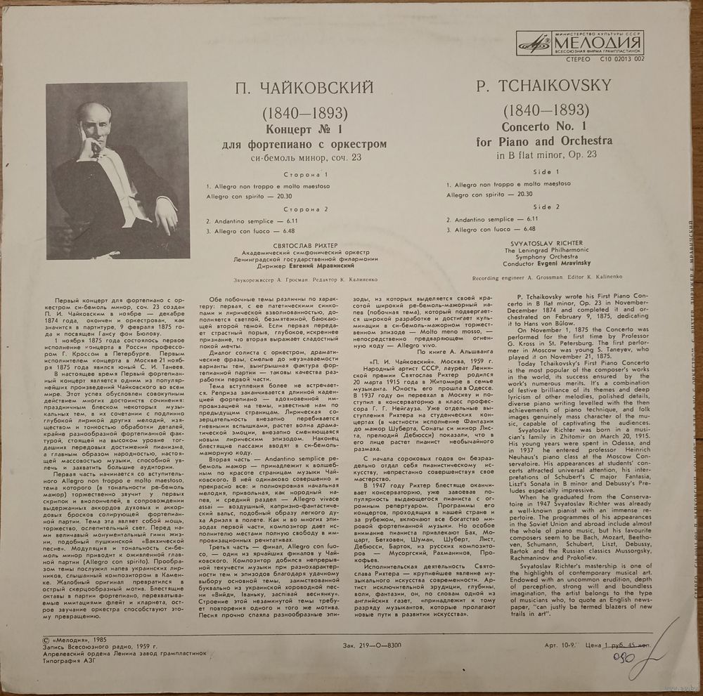 Sviatoslav Richter. Evgeny Mravinsky - P. Tchaikovsky – Concerto No. 1 For Piano And Orchestra In B Flat Minor, Op. 23
