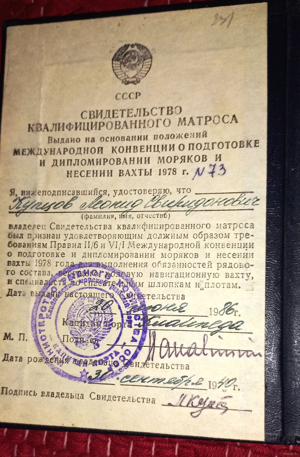 свидетельство квалифицированного матроса