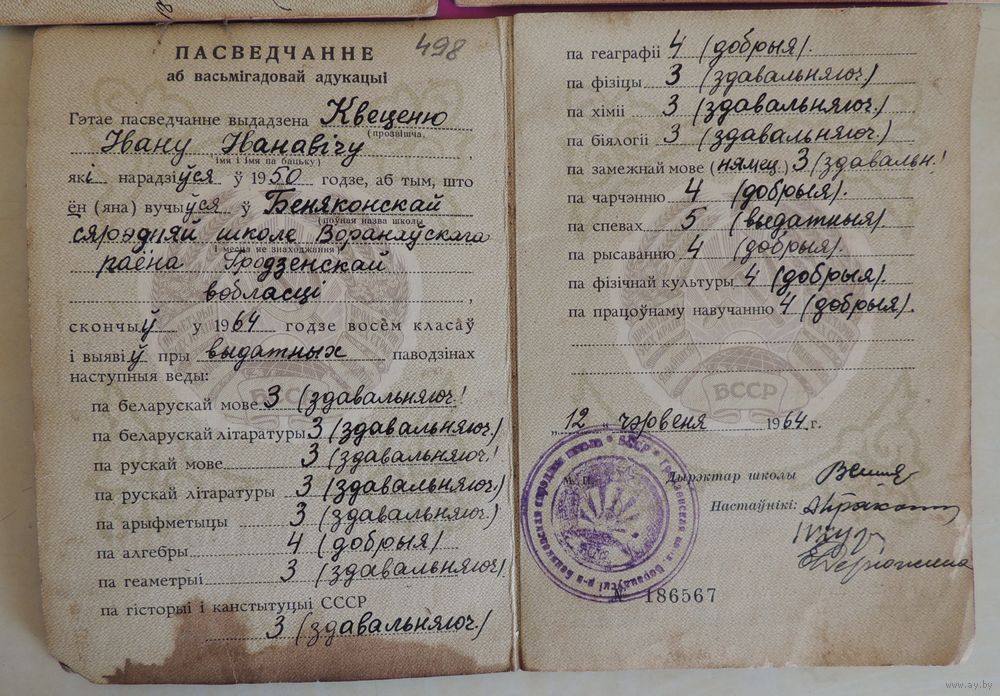 Свидетельство о базовом образовании 1964, 1966 г, свидетельство о среднем образовании 1968 г.
