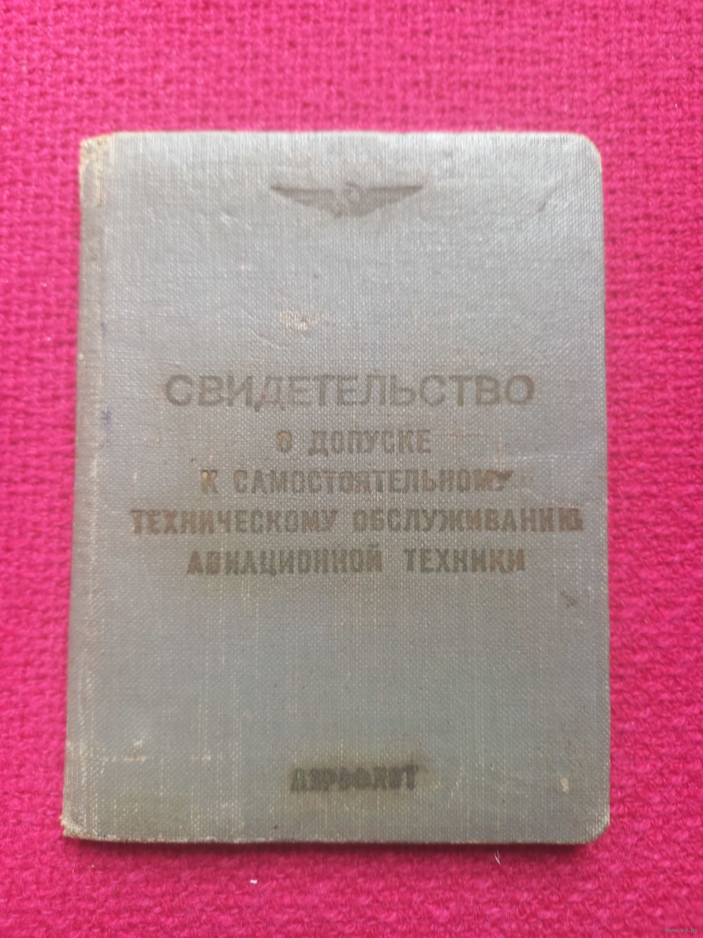 Свидетельство о допуске обслуживанию авиационной техники. Аэрофлот.