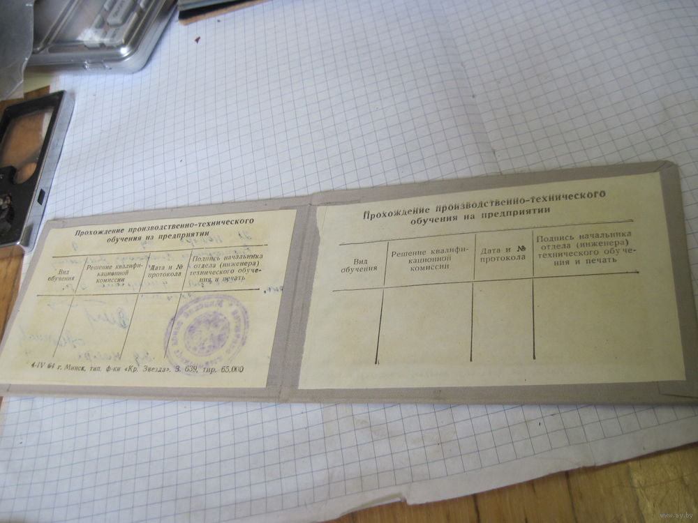 Свидетельство о повышении квалификации на Минском заводе тракторных запчастей 1969 г с рубля!