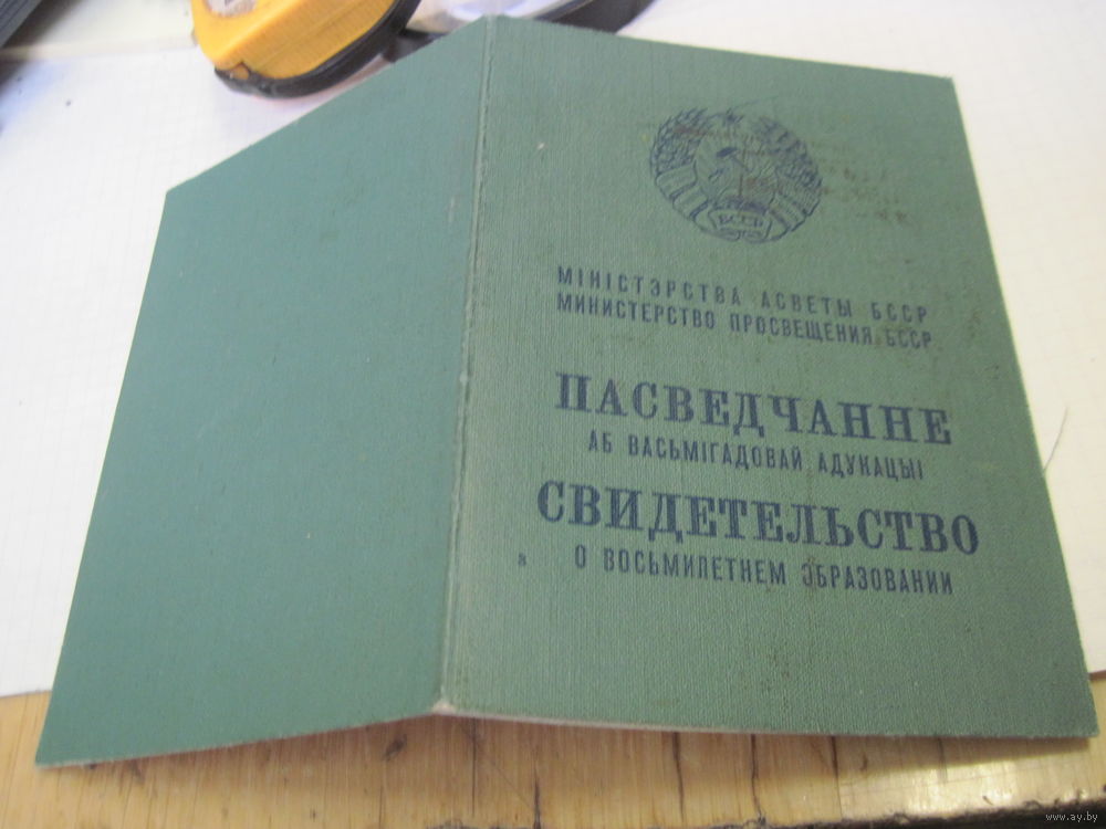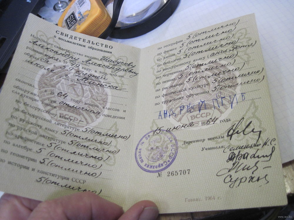 Свидетельство о восьмилетнем образовании 1964 г. с рубля!