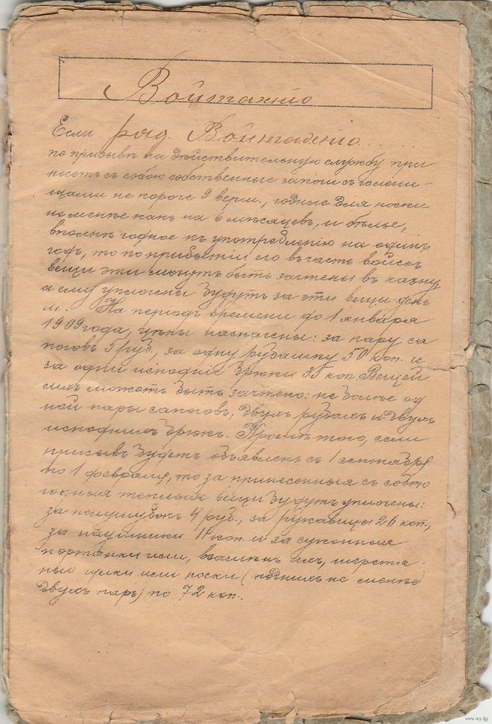 Свидетельство о выполнении воинской повинности Ратника 1-го разряда 1888год.