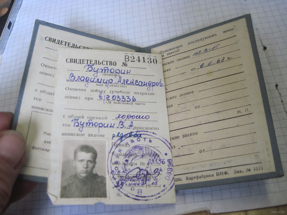 Свидетельство об окончании учебного подразделения 1963 г с рубля!