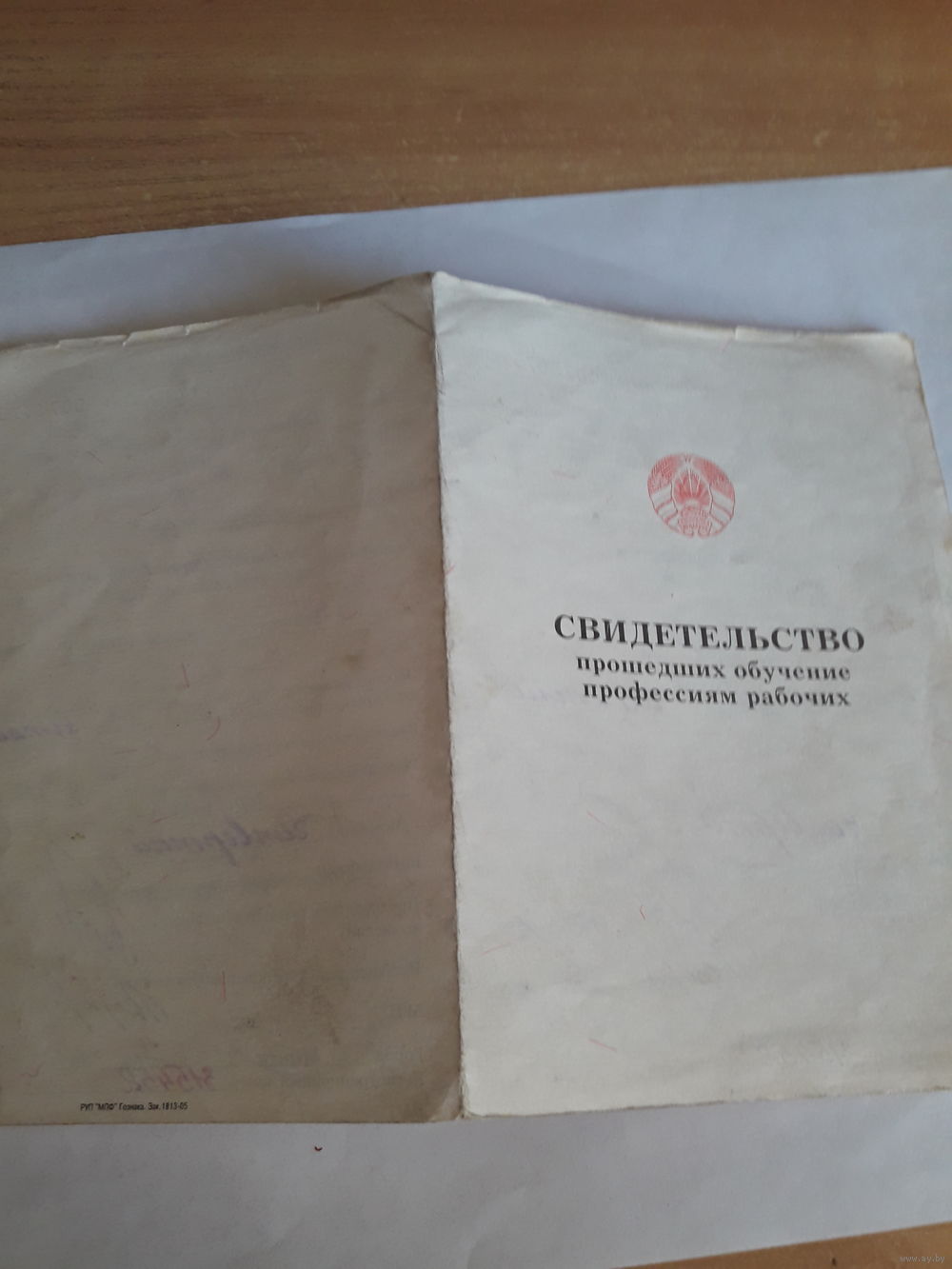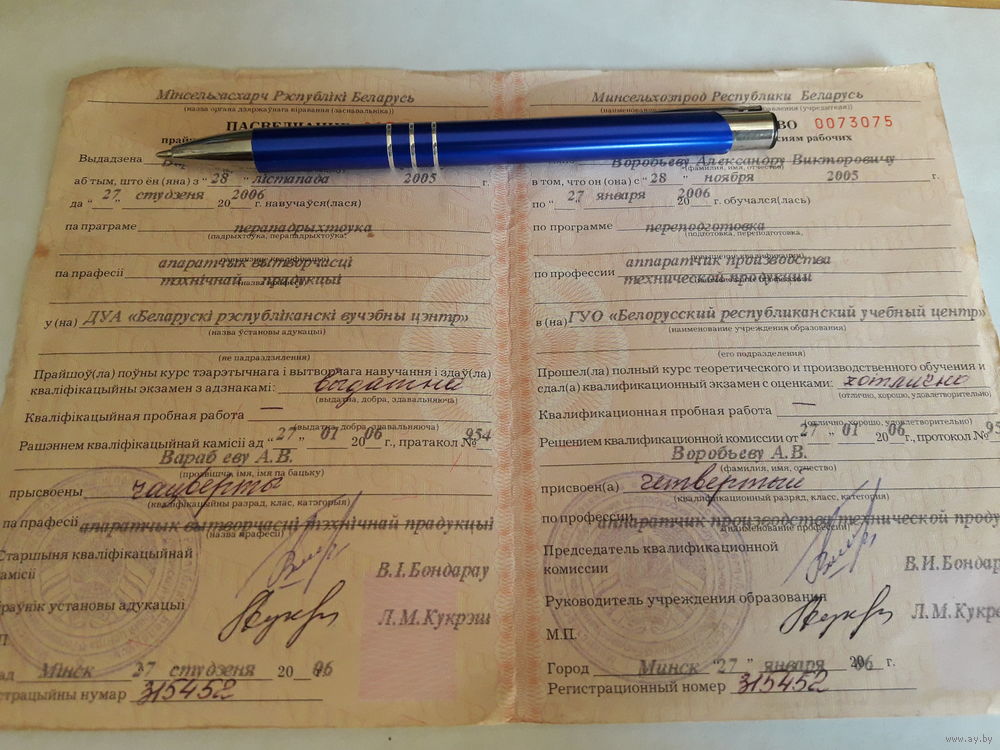 Свидетельство прошедших обучение прфессиям рабочих РБ
