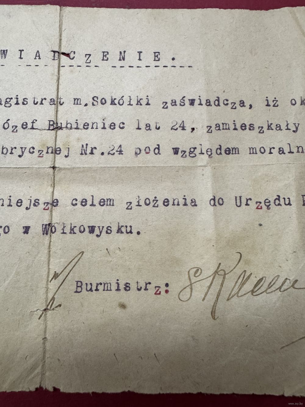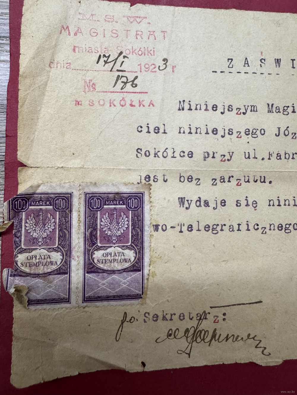 Свидетельство.Сокулка.1923г. п-ка 2.