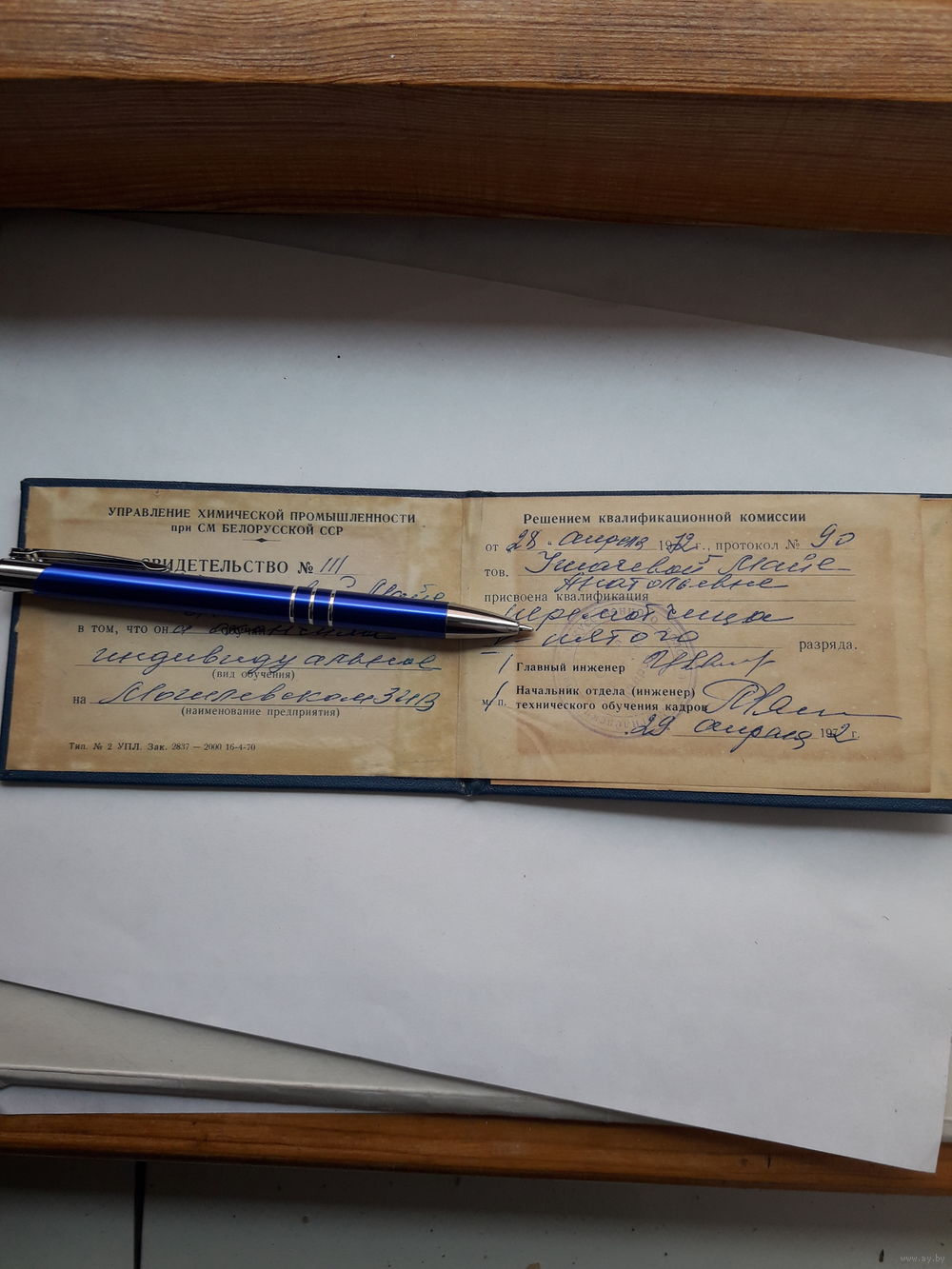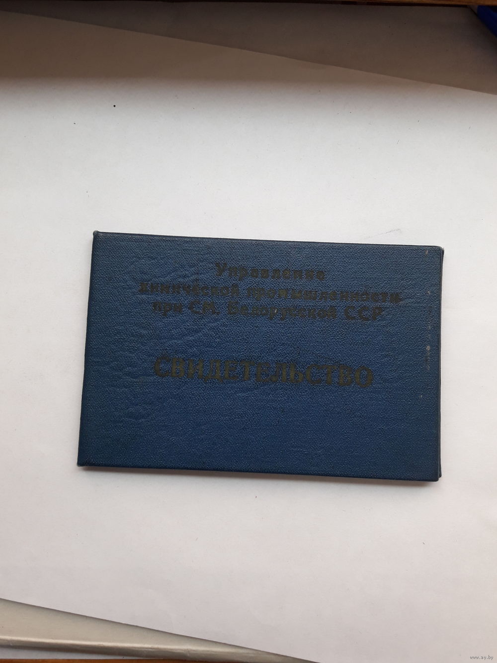 Свидетельство управления хим. пром. при СМ БССР