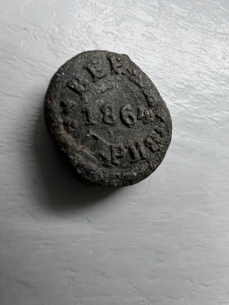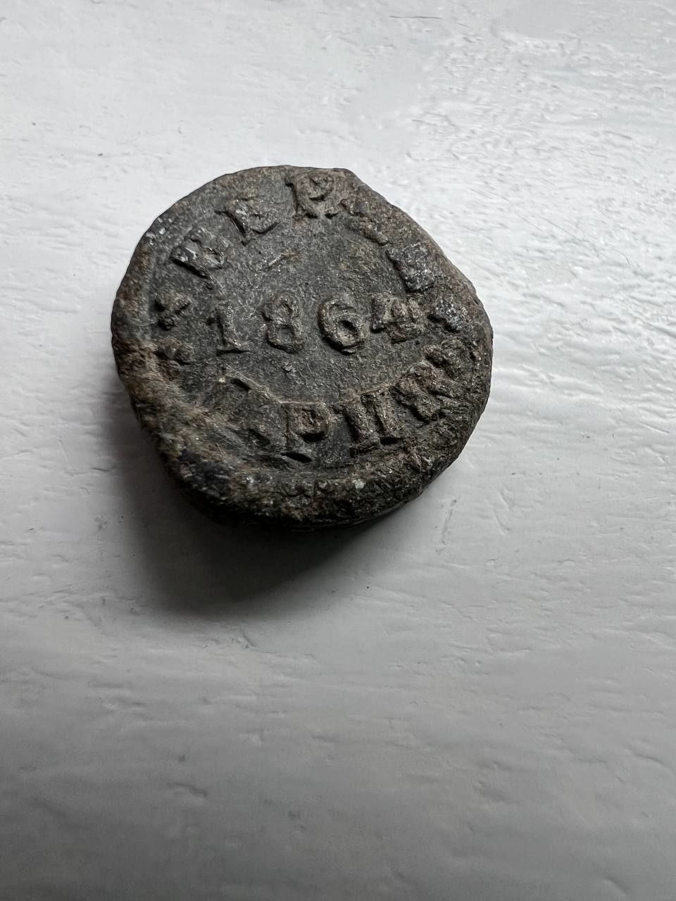 Пломба с датой 1864 года. Размер с однокопеечную монету. Возможен обмен.