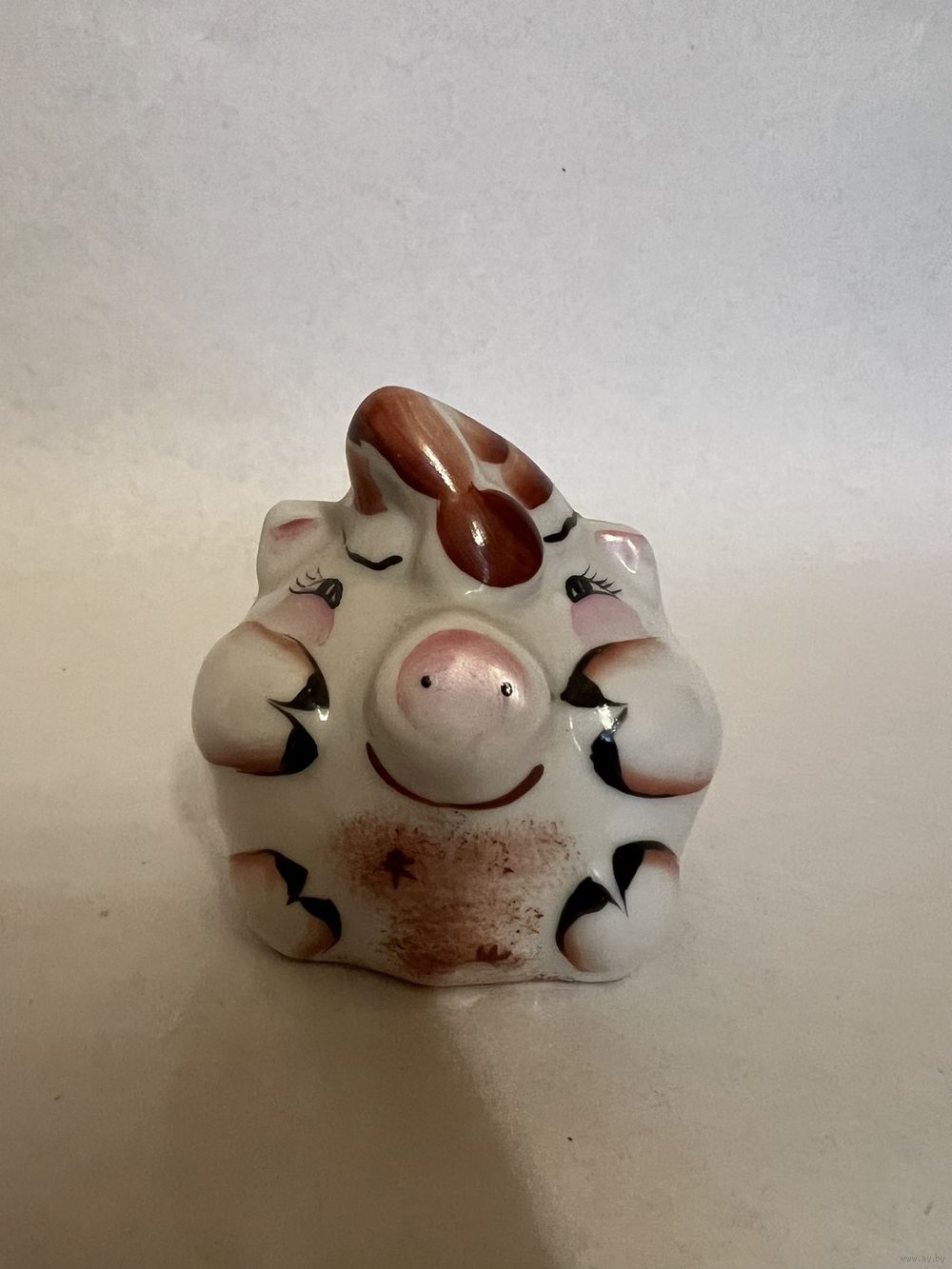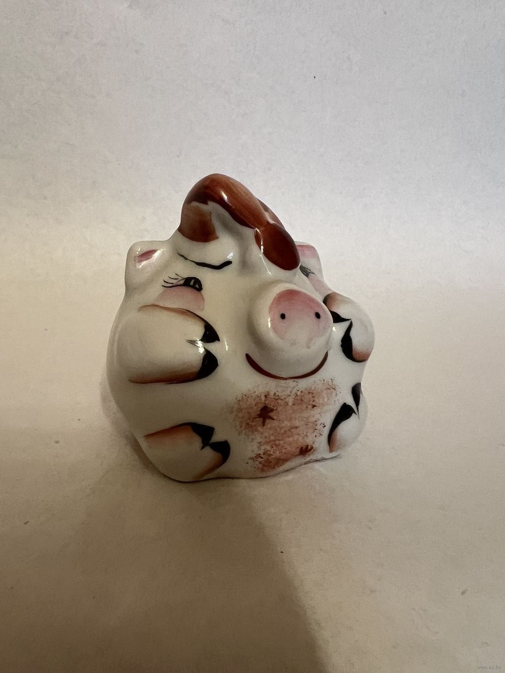 Фарфоровая статуэтка "Свинья", высота 5 см, производство Добрушский Фарфоровый Завод (ДФЗ). Почта, европочта.