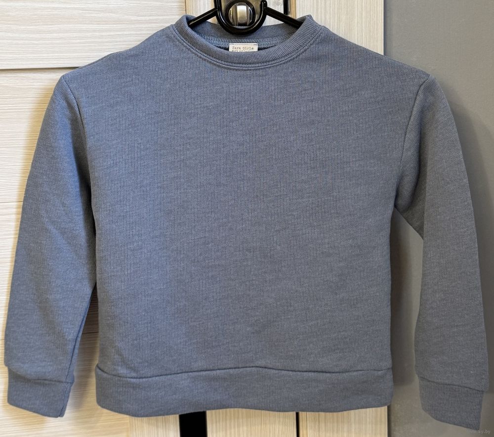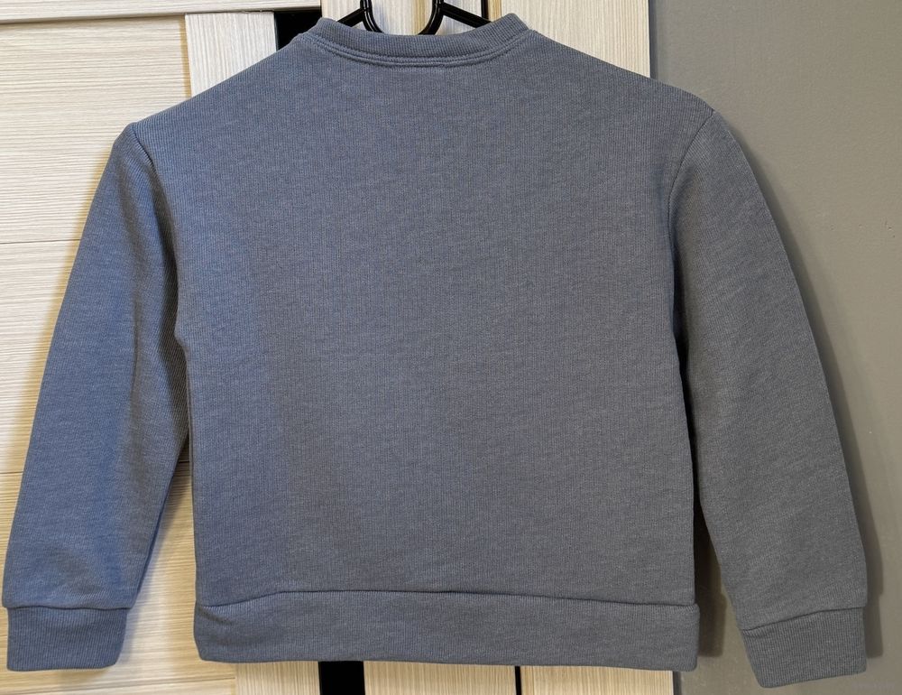 Свитшот ZARA, сток. Рост по ярлыку 122 см. Ткань хлопок+полиэстер. Цвет серо-голубой.