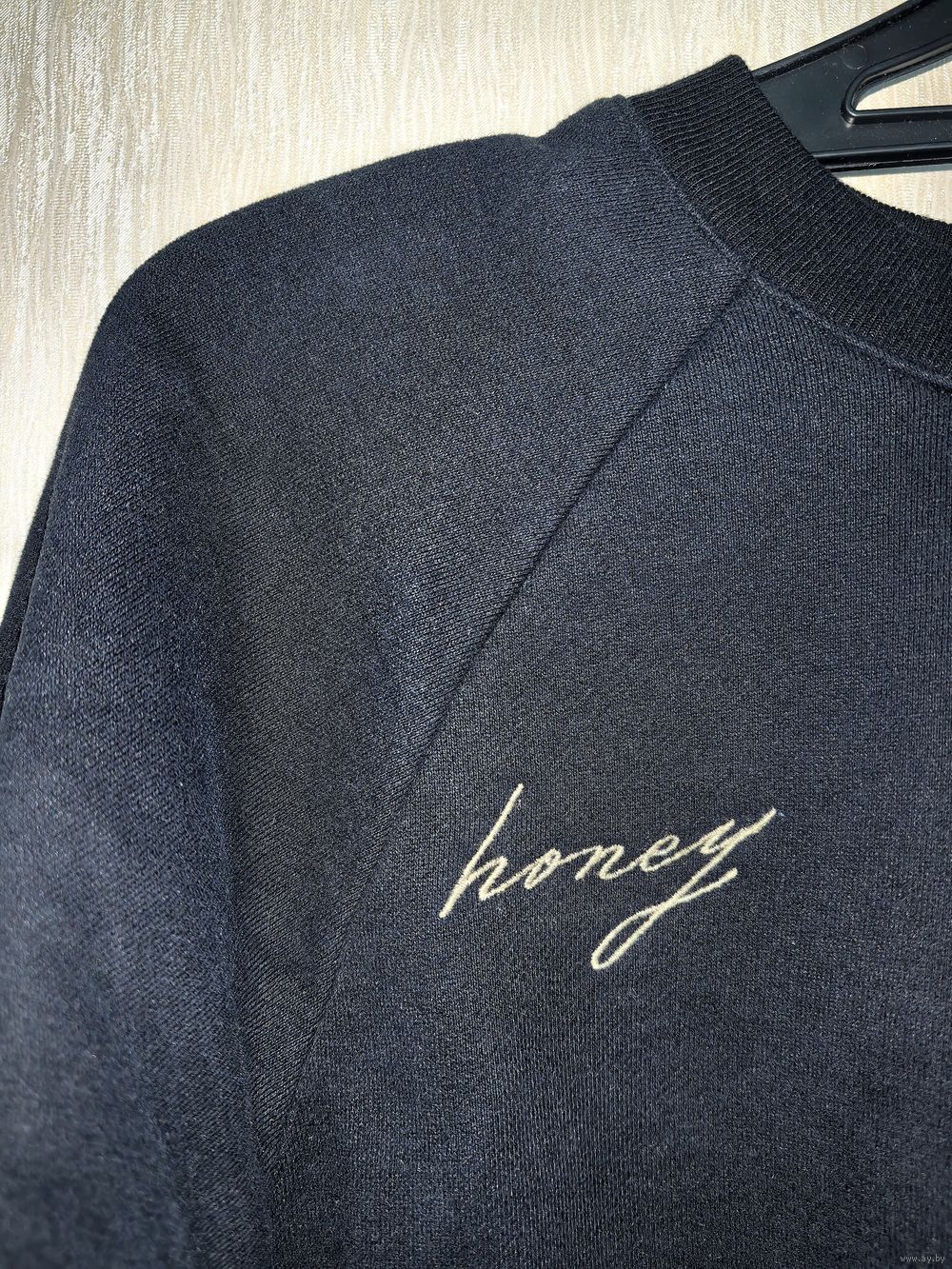 Объёмный свитшот, толстая мягкая ткань. На последнем фото - пример, как сидит.