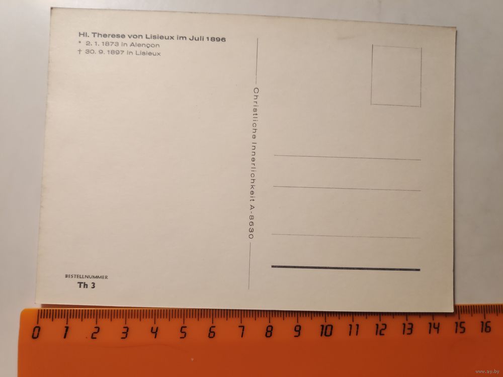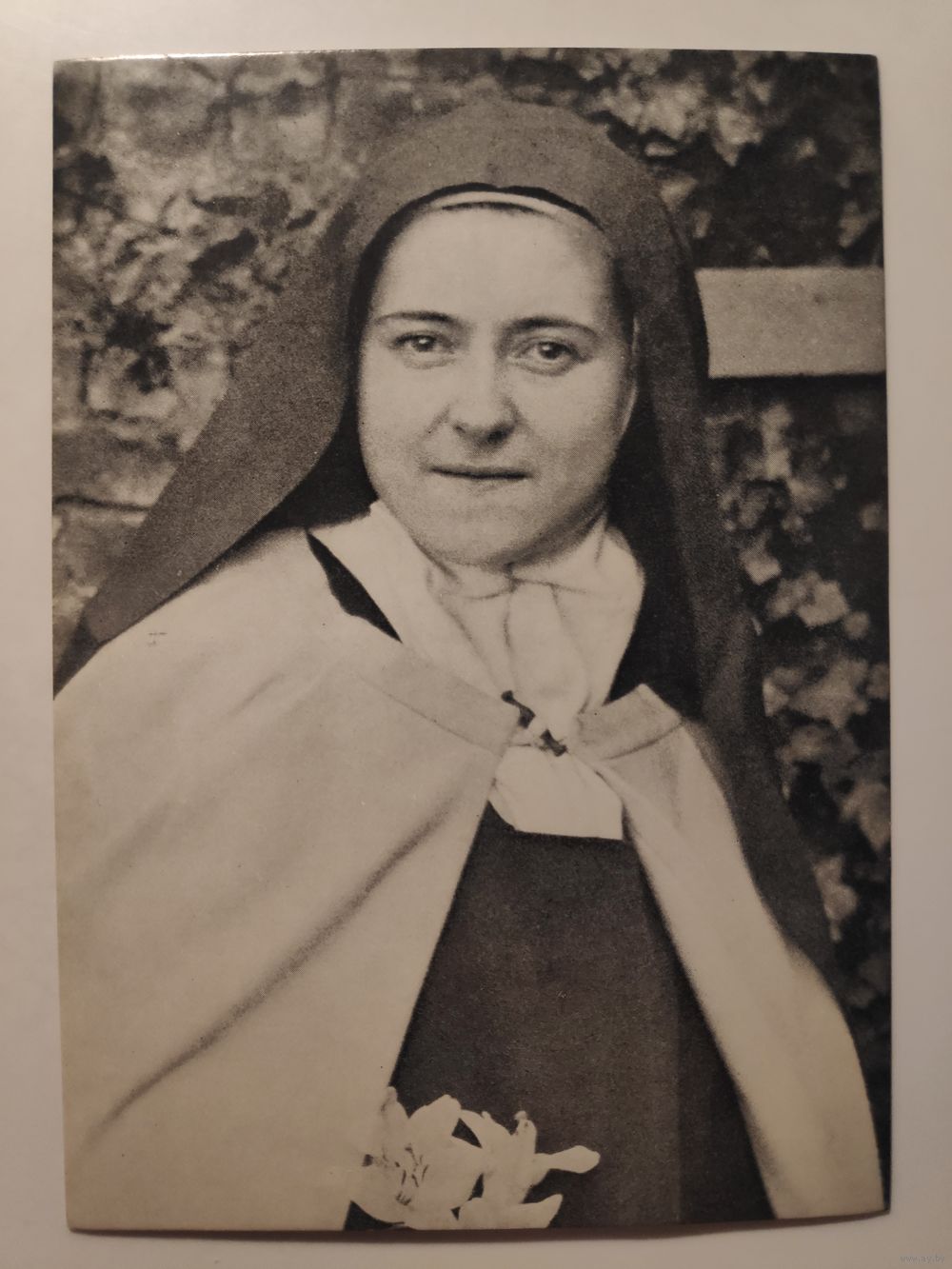 Hi. Therese von Lisieux im Juli 1896* 2. 1. 1873 in Alençon+ 30. 9. 1897 in LisieuxСвятая Тереза из Лизьё (1873–1897), известная также как Малая Тереза или Тереза Младенца Иисуса, — французская монахиня-кармелитка, одна из самых почитаемых католических святых и Учитель Церкви.