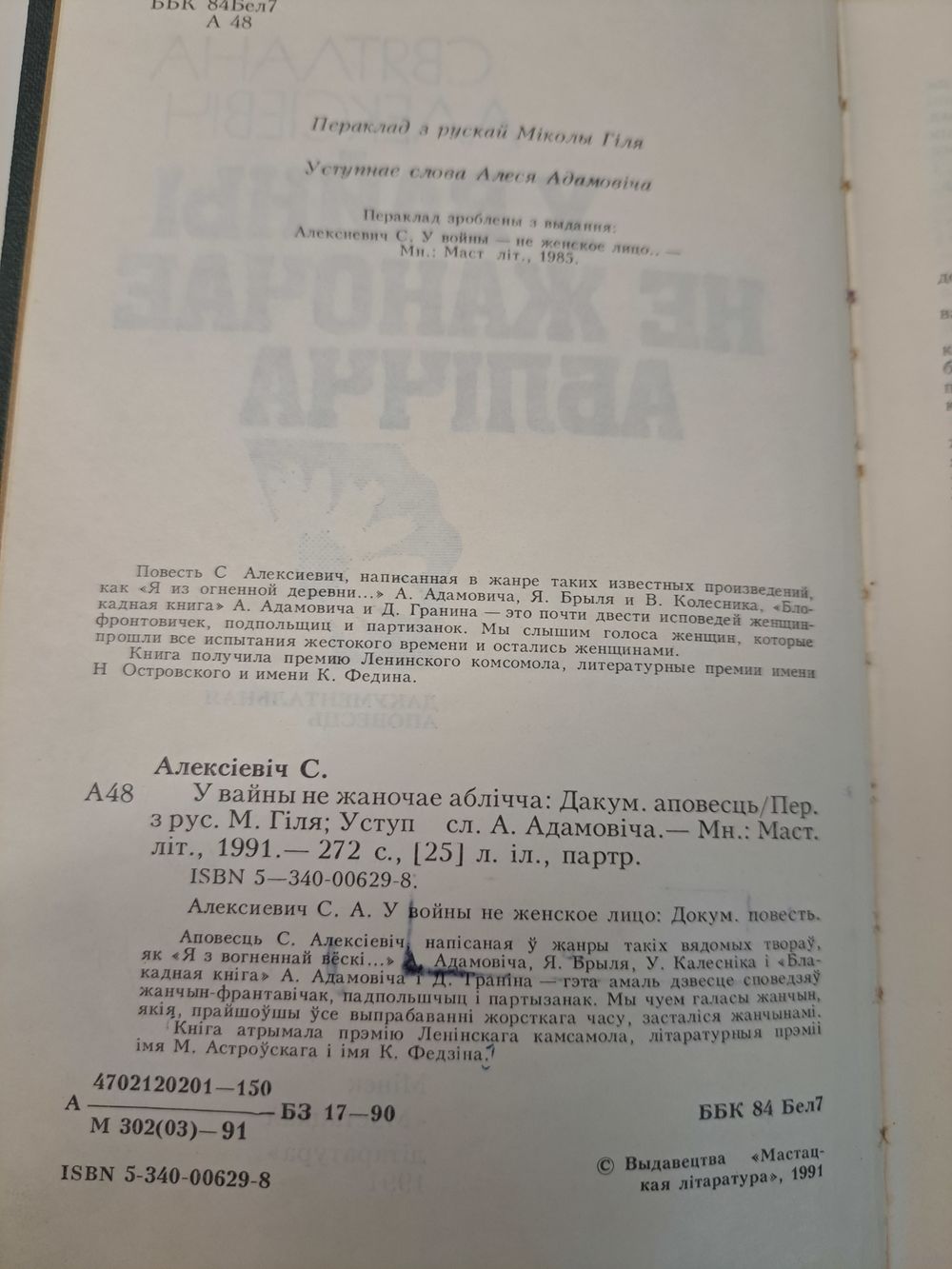 Святлана Алексіевіч У вайны не жаночае аблічча