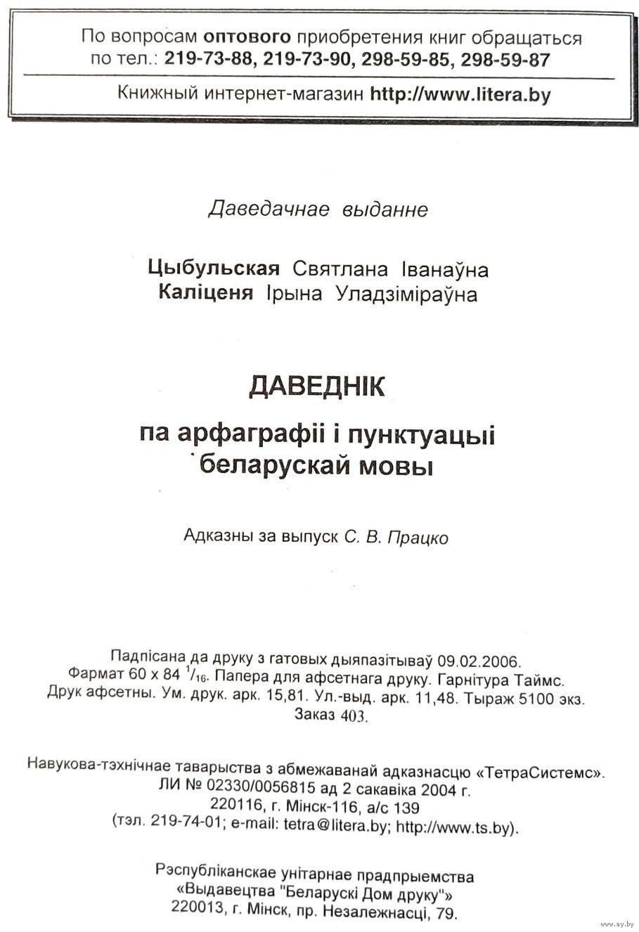 Святлана Цыбульская, Ірына Каліценя - Даведнік па арфаграфіі і пунктуацыі беларускай мовы (2-е выданне) — гэта навучальны дапаможнік, які змяшчае асноўныя правілы правапісу і пунктуацыі, прыклады з літаратуры, а таксама практыкаванні. Ён прызначаны для школьнікаў, абітурыентаў і настаўнікаў для падрыхтоўкі да экзаменаў і тэсціравання