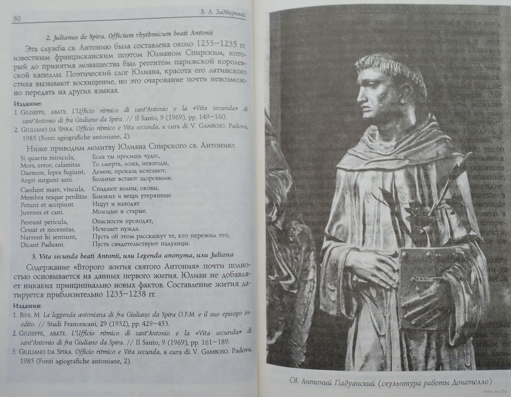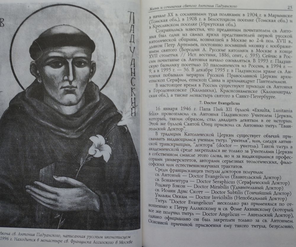 Билингва - латинский оригинал и перевод. Редакция перевода, вступительная статья и комментарии В. Л. Задворного. Большой формат. Ляссе. Тираж 2000 экз. 400 стр. Святой Антоний Падуанский — первый францисканец, получивший известность как теолог. Благодаря ему францисканское движение приобрело новое качество: духовность Ордена Меньших Братьев начала проникать в ученое богословие, что впоследствии выразилось в появлении оригинальных богословских школ, представители которых занимались научными исследованиями именно в качестве наследников духовности св. Франциска. Поначалу это явление может показаться некоторым парадоксом: достаточно сравнить известные из предания слова св. Франциска, так ярко характеризующие “рыцаря бедности”, предостерегавшие от стремления к учености как от суетного: “Много на свете тех, кто по доброй воле поднимается до науки, но благосло¬ вен будет тот, кто ради любви к Всевышнему останется несведущим”, — с интеллектуально изысканным стилем такого францисканского теолога, как св. Иоанн Дунс Скотг, заслуживший титул “Тончайшего Доктора” (Doctor Subtilis). Однако этот парадокс возник почти в самом начале истории Ордена Антоний Падуанский был непосредственным учеником “антиинтеллектуалиста” Франциска, но это не мешало ему превосходно знать не только Библию, но и теологическое наследие своих предшественников. Более того, именно от св. Франциска он получил благословение на образовательную деятельность: “Хочу я, чтобы ты читал святую теологию, лишь бы среди этих трудов ты не погасил дух молитвы и благочестия”.