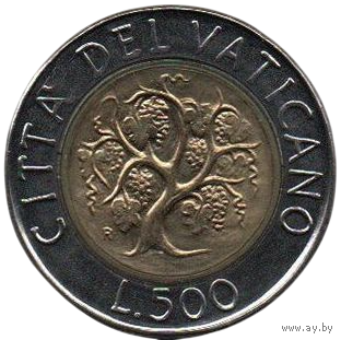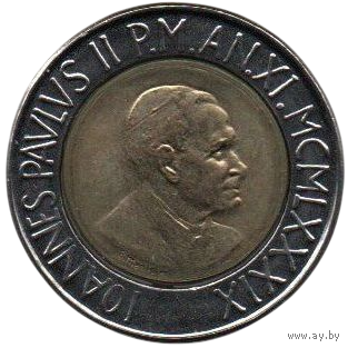 Святой Престол. Государство Город Ватикан. 500 лир 1989. Папа Ян Павел II. Виноградная лоза. Юбилейный выпуск. Миссии мирян в мире
