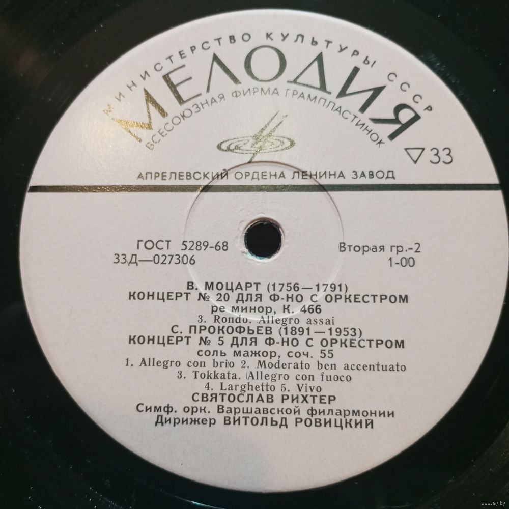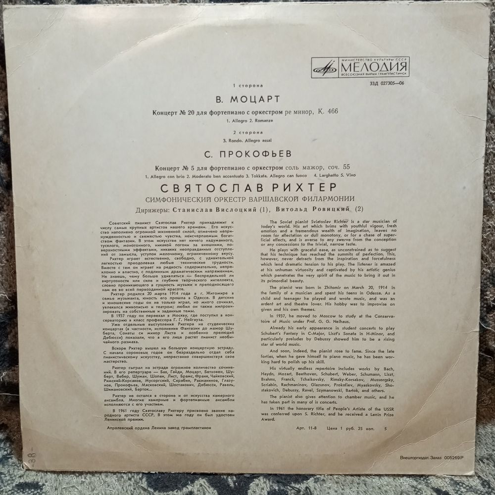 Святослав Рихтер, СО Варшавской филармонии, дир. Ст. Вислоцкий и В. Ровицкий* - В. Моцарт. Концерт No.20 для ф-но с оркестром / С. Прокофьев. Концерт No.5 для ф-но с оркестром* - АЗГ