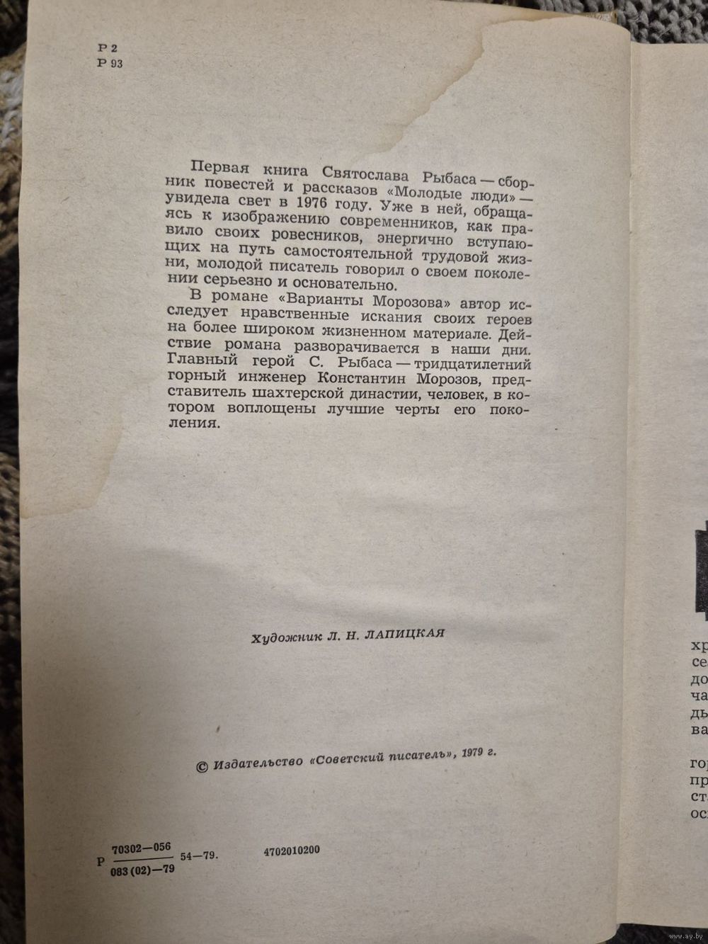 79. Святослав Рыбас, Варианты Морозова, М.: Советский писатель, 368 страниц; 1979 г.