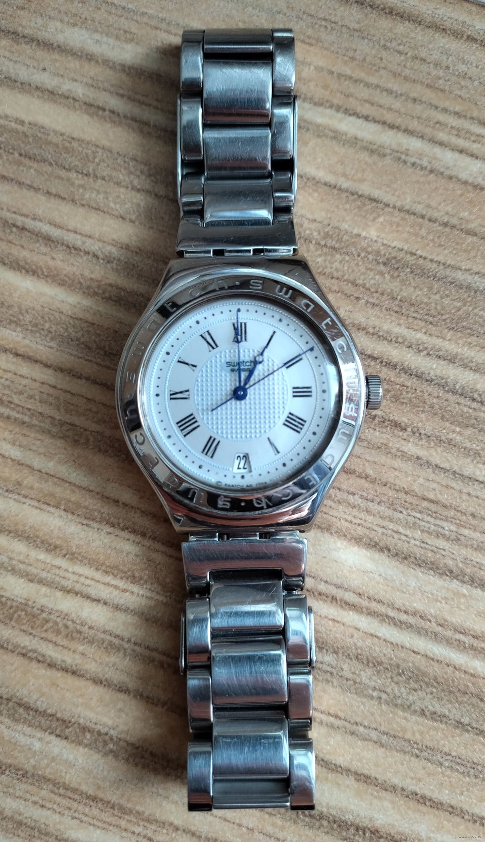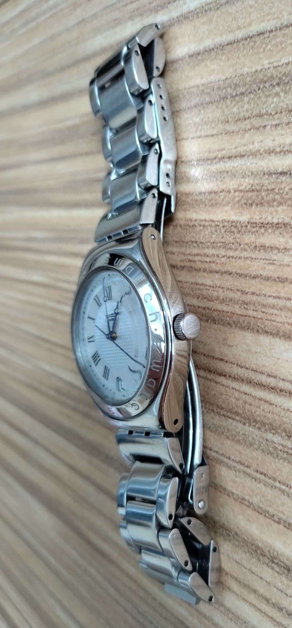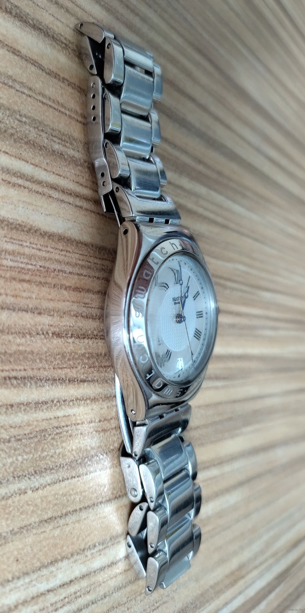 Особенности: Безель (кольцо вокруг циферблата) украшен гравировкой с названием бренда «Swatch».