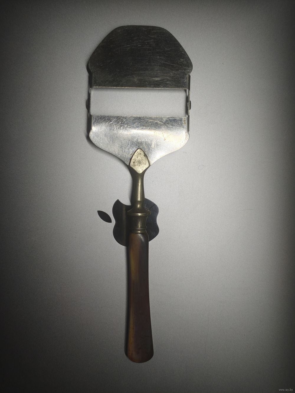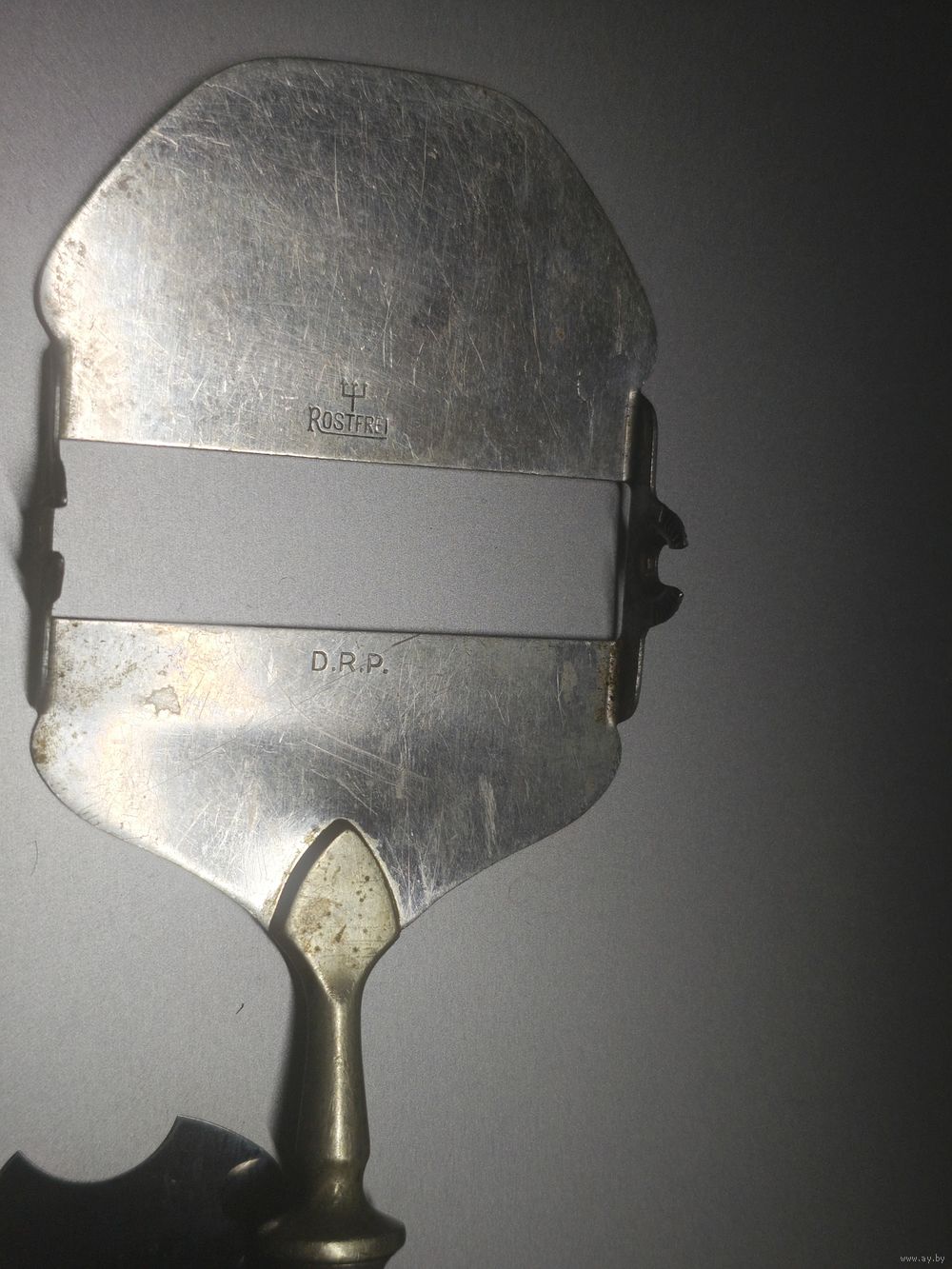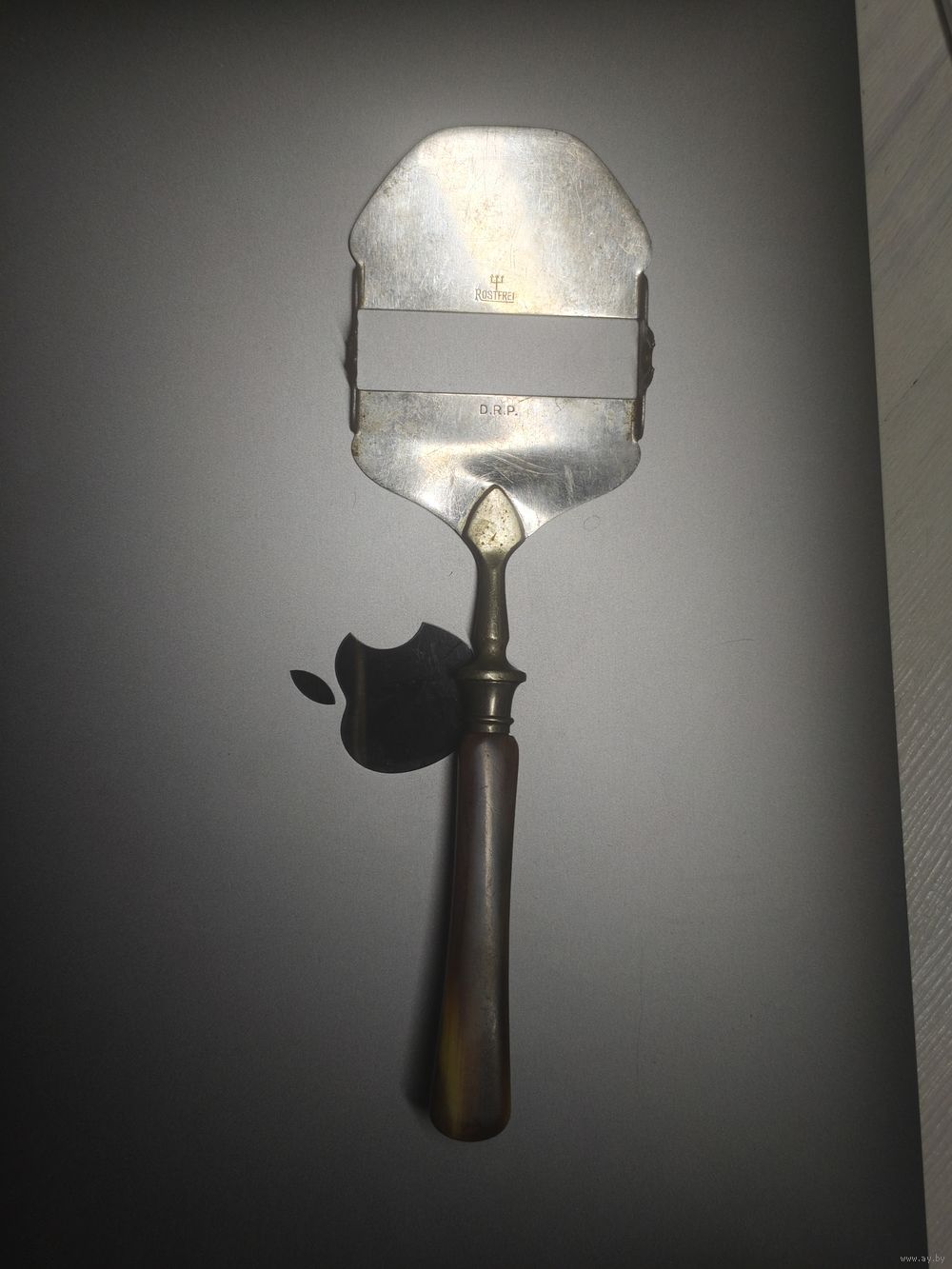 Старинная немецкая сырорезка, лезвие отсутствует. Ручка из твердого пластика, имеет реакцию на соду (последнее фото). Металл - нержавейка (указан на клейме).