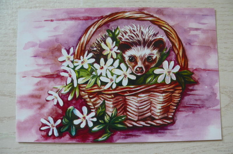 Сыскова Елена, Ежик в корзинке с цветами; чистая, изд. до 2000г.