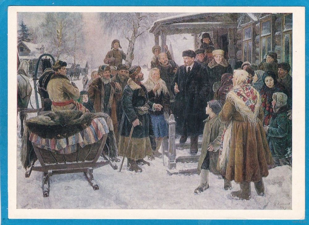 Сысоев Ленин Крупская Крестьяне Горки Сани Живопись Соцреализм ИИ 1962 СССР