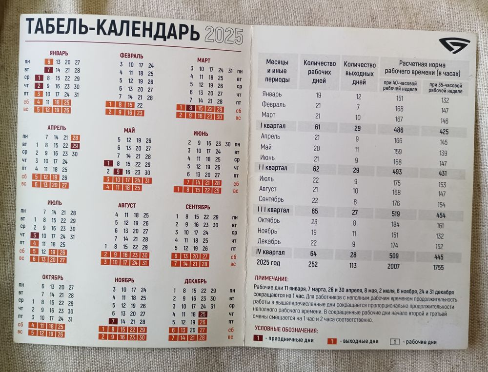 Табель-календарь МТЗ 2025г.