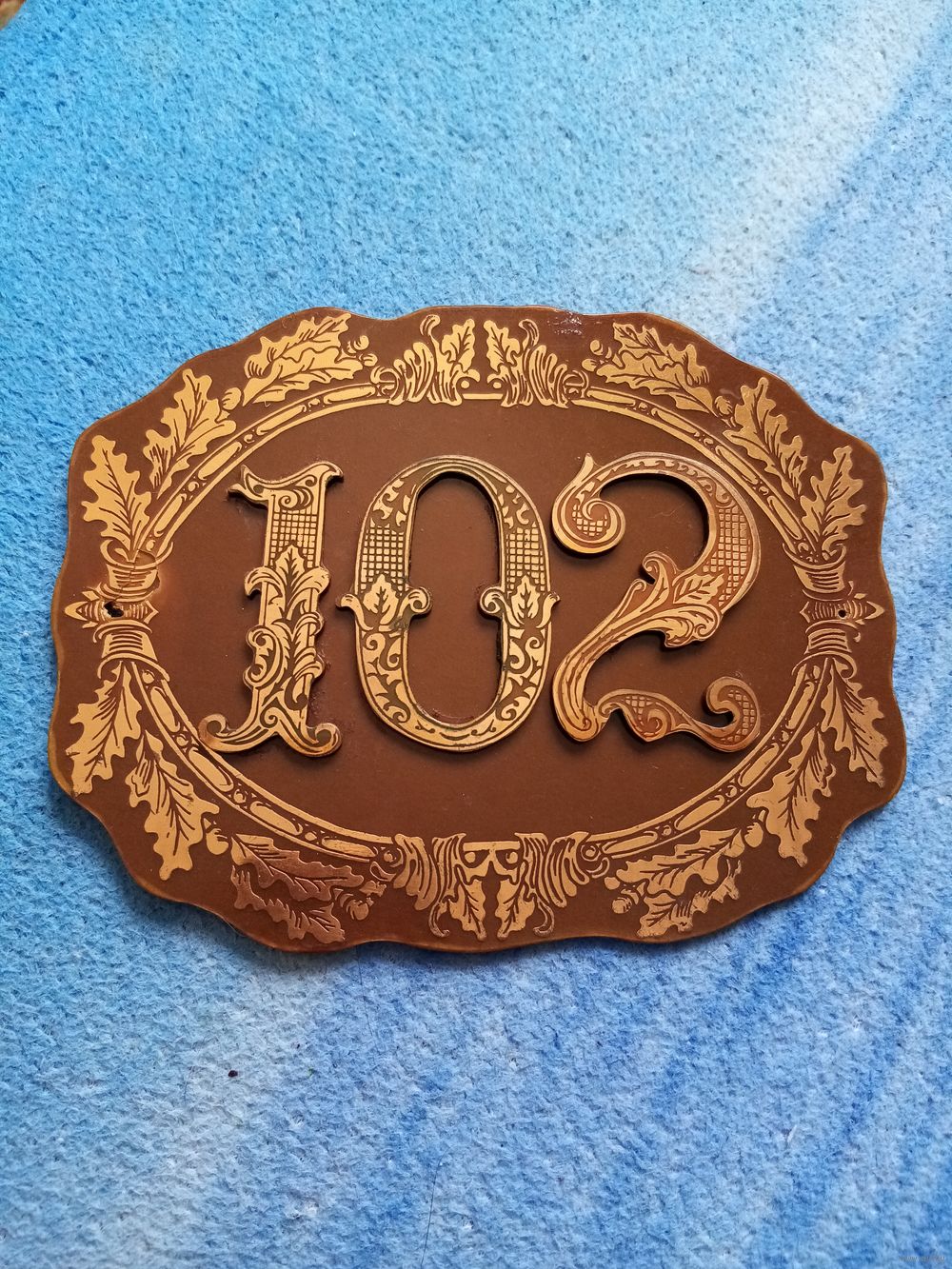 Шикарная номерная табличка для двери из СССР в отличном состоянии. Размер 16,5 х 13см. Цифры съёмные. Возможность установить любой номер в диапазоне цифр "1","0","2".