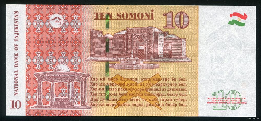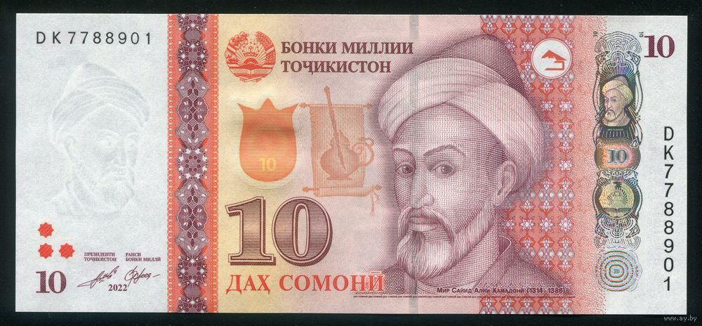 Таджикистан 10 сомони 2022 г. P24e. Серия DK. UNC