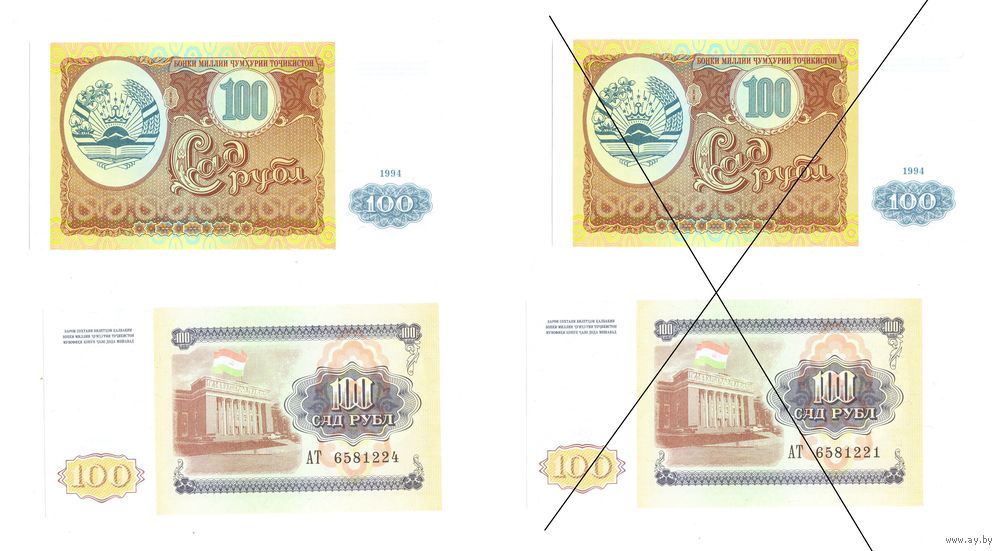 Таджикистан 100 рублей АТ 1994 год