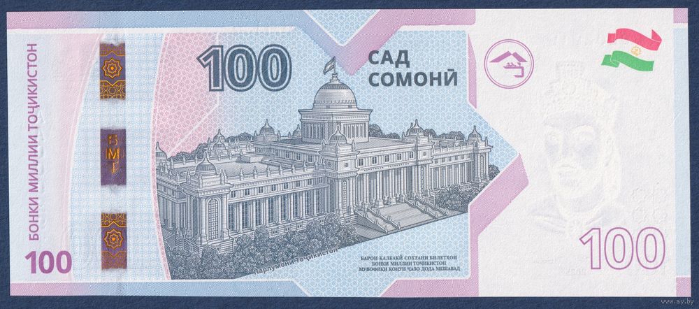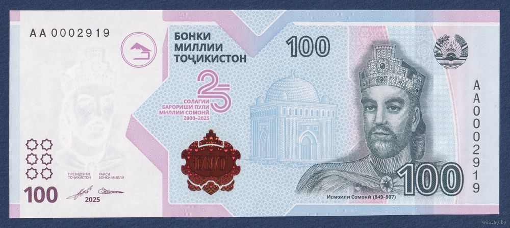 Таджикистан, 100 сомони 2025 г, P-W29 (AA, памятная - 25 лет валюте, номинация IBNS 2025, без буклета), UNC