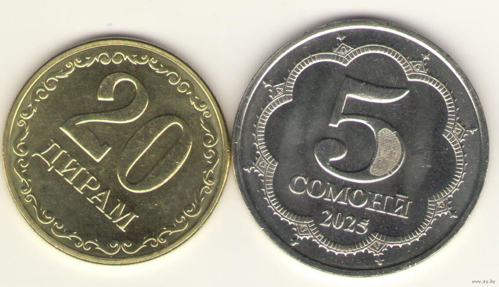 Таджикистан: 20 дирам и 5 самони 2025 г. Мешковые.