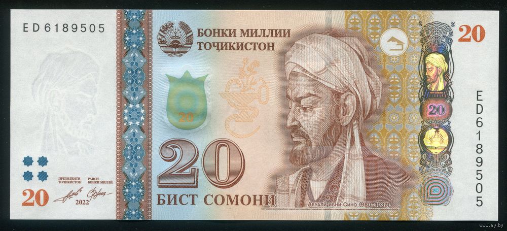 Таджикистан 20 сомони 2022 г. P25e. Серия ED. UNC
