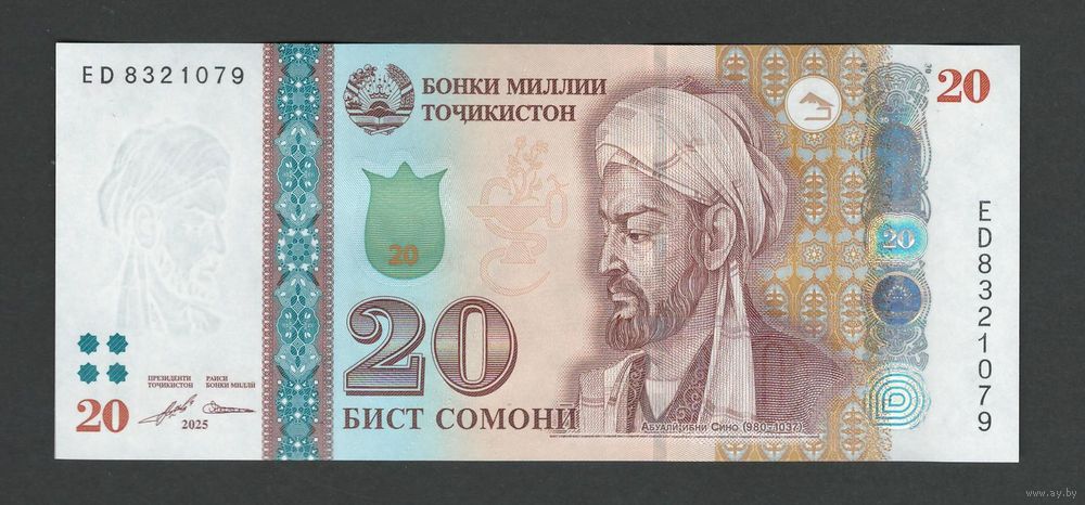 Таджикистан 20 сомони 2025 года. Тип Р-25. Состояние UNC!