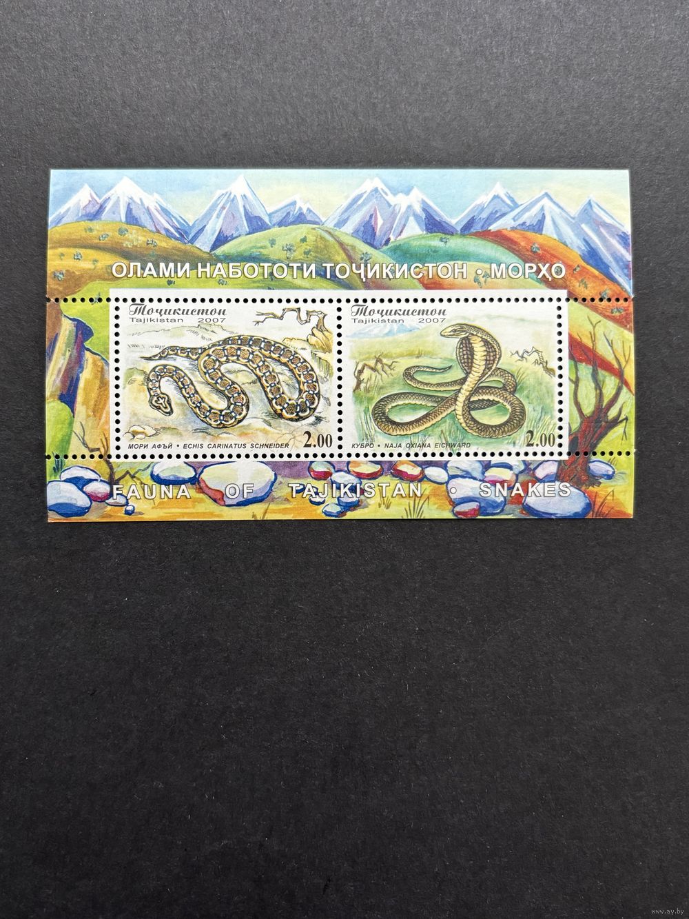 Таджикистан 2007 .Фауна. Змеи. Блок