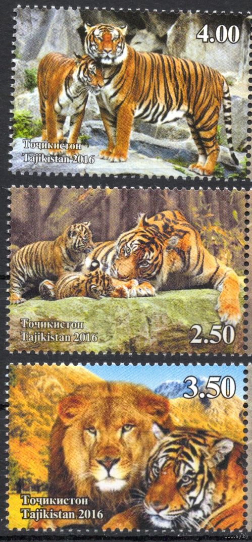 Таджикистан 2016. Фауна Тигры 3 марки (433)
