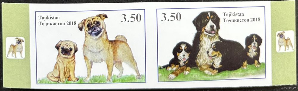 Таджикистан 2018 .Фауна. Собаки. Сцепка из 2 марок беззубцовая
