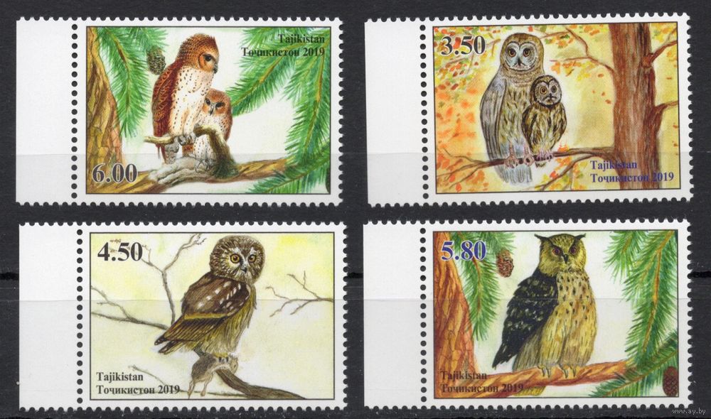 Таджикистан 2019. Фауна Птицы совы 4 марки (504)