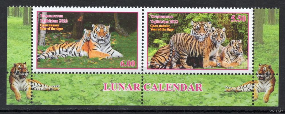 Таджикистан 2022. Год тигра. Лунный календарь 2 марки (573)