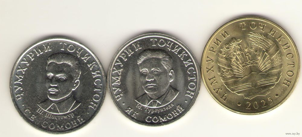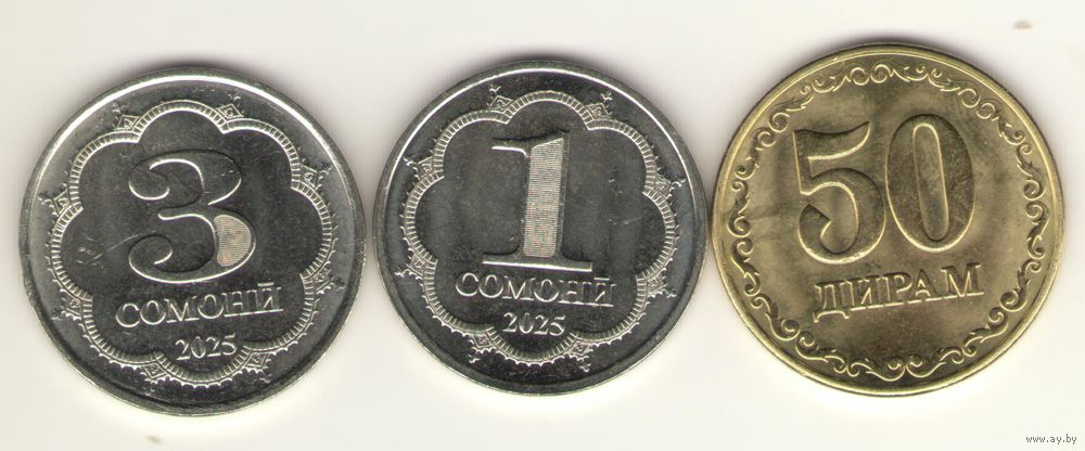 Таджикистан: 50 дирам, 1 и 3 самони 2025