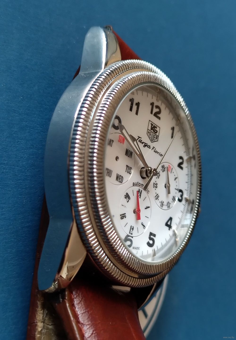 Реплика, китайский механизм с проблемой - механизм заводится головкой с прокрутами. Браслет закрывается не надёжно.