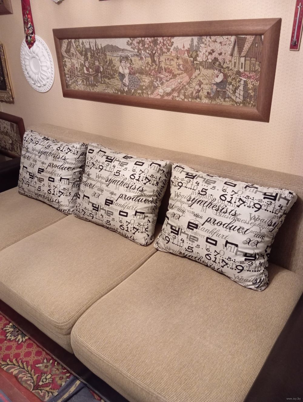 ТАХТА - Дл - 180 см , Ш - 83 см , Выс - 75 см , дорогая плотная ткань . Не используется , стоит в накрытом состоянии + 3 шт спинки-подушки от дивана . САМОВЫВОЗ - г. Борисов , 1этаж , в любое удобное для Вас время дня .