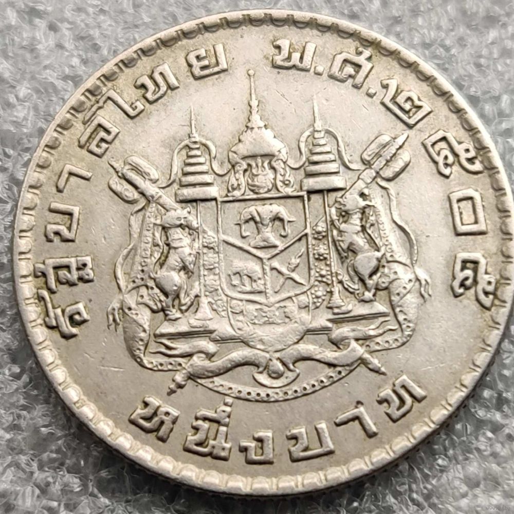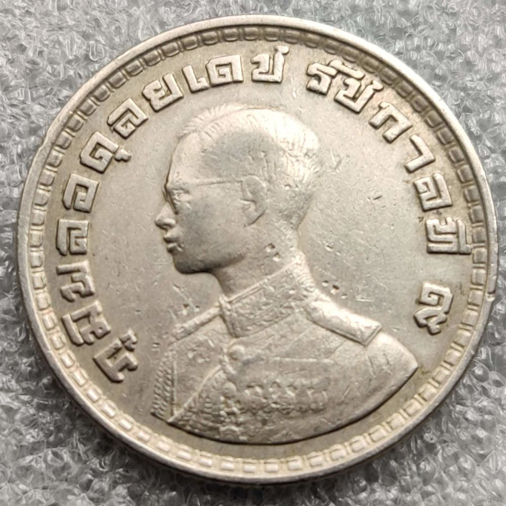 Номер Y # 84 Страна Таиланд Период Король Рама IX (1947 - 1986) Правитель Рама IX Валюта Тайский бат Вид чекана Регулярный чекан Номинал 1 бат Год BE 2505 (1962) - ๒๕๐๕ Гурт Рубчатый Форма Круг Отношение авс/рев Монетное (180°) Материал Медно-никелевый сплав Вес (g) 7,5 Диаметр (mm) 26,9 Толщина (mm) 1,73