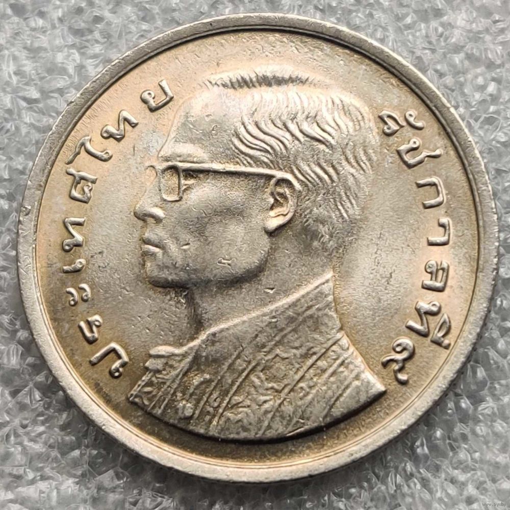 Номер Y # 110  Страна  Таиланд  Период  Король Рама IX (1947 - 1986)  Правитель  Рама IX  Валюта  Тайский бат  Вид чекана  Регулярный чекан  Номинал  1 бат  Год  BE 2520 (1977) - ๒๕๒๐  Гурт  Рубчатый  Форма  Круг  Отношение авс/рев  Монетное (180°)  Материал  Медно-никелевый сплав  Вес (g)  7  Диаметр (mm)  25  Толщина (mm)  1,8
