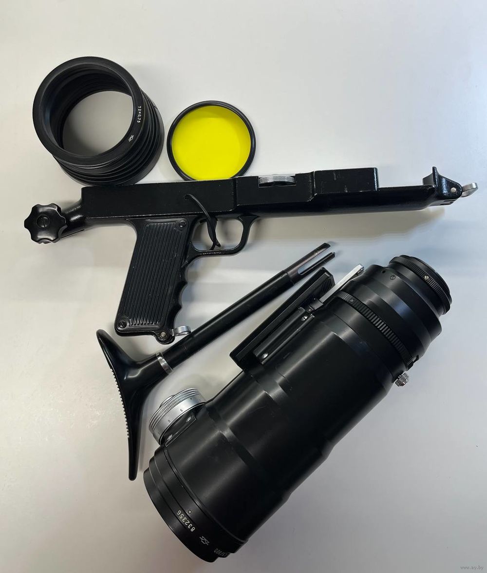 Таир - 3фс 300/4.5 с прикладом в комплекте все что на фото. Так же прикручена быстосьемная пластина ласточкин хвост для современных фотоштативов. При желании легко снимается. По корпусу есть следы времени. Где то царапины, где то потертости.