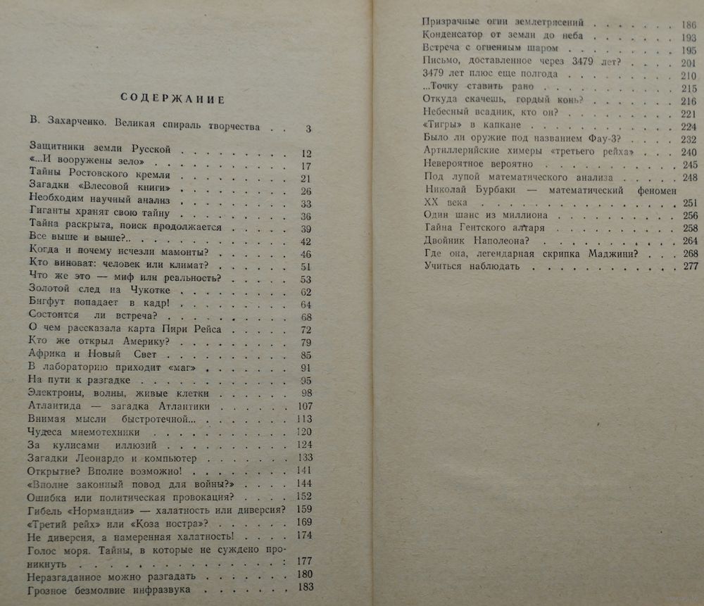 288 стр. Составители В. Захарченко, В. Орлов, Н. Шапова. Художник Р. Авотин. Сборник научно-художественных очерков, посвященных загадкам прошлого, поискам и находкам, связанным с историей цивилизаций, развитием науки техники, ремесел.