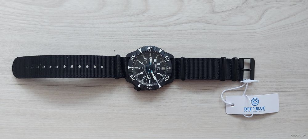 Продам новые нечастые механические милитари часы с тритиевой подсветкой и карбоновым корпусом DEEP BLUE DAYNIGHT DIVER PC TRITIUM AUTOMATIC T100, Ref. DNPCAUTOWHITEBLUE.