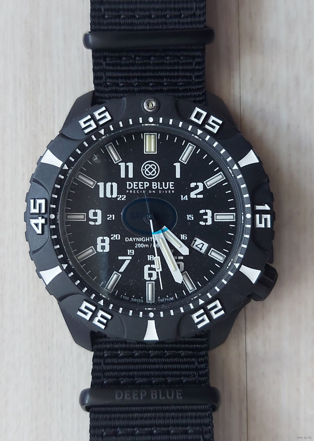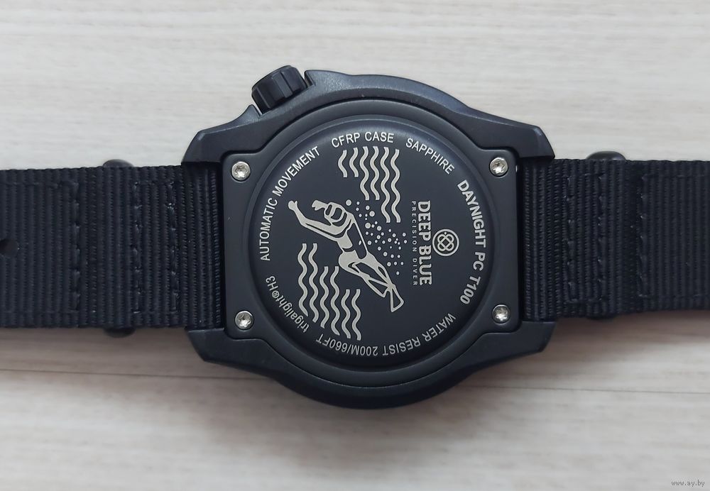 Продам новые нечастые механические милитари часы с тритиевой подсветкой и карбоновым корпусом DEEP BLUE DAYNIGHT DIVER PC TRITIUM AUTOMATIC T100, Ref. DNPCAUTOWHITEBLUE.
