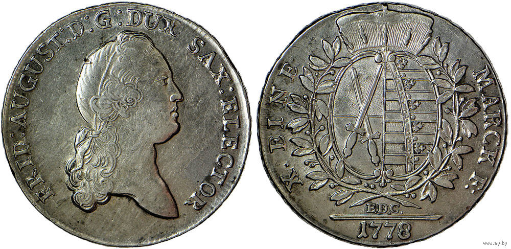 талер 1778 г. E.D.C. Фридрих Август I. Курфюршество Саксония (1763 - 1806). Отличное коллекционное состояние. Краузе КМ# 992